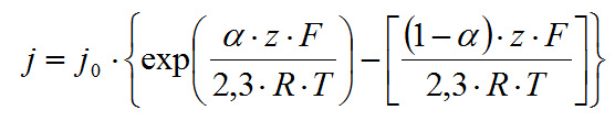 j0 výměnná proudová hustota, charakterizující rychlost dílčího děje,