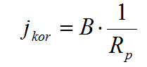 Protože hodnoty ba a bk jsou pro daný korozní systém konstantní a v řadě případů tabelované, je rovnice vztahu mezi hodnotami jkor a Rp uváděna ve zjednodušeném tvaru: